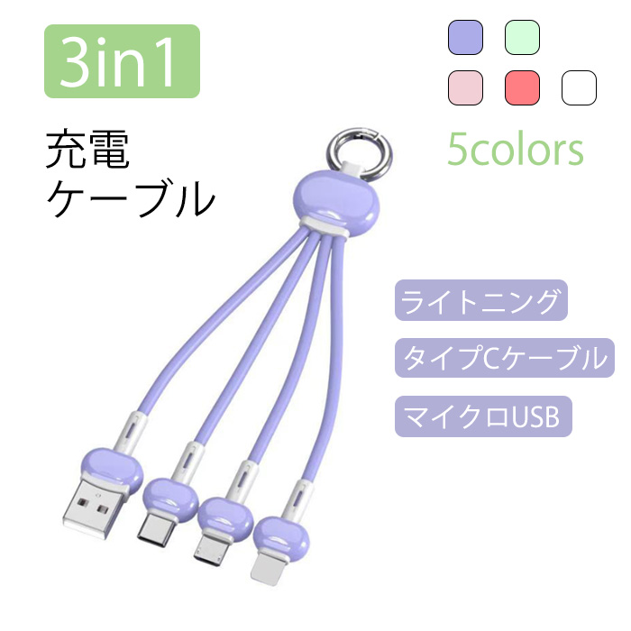 iPhoneケーブル Type-Cケーブル Micro USBケーブル 3in1充電ケーブル ストラップ式 急速充電ケーブル 可愛い おしゃれ iPhone用 Android用
