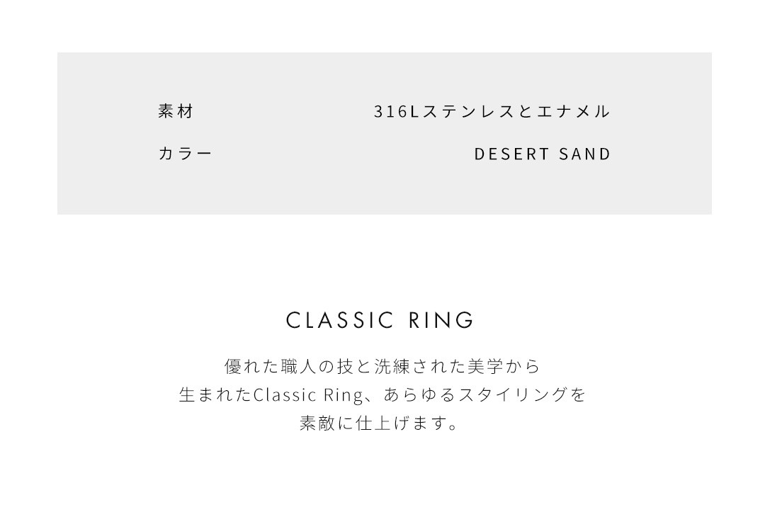 Emalie Ringはステンレススチールとエナメルのバランスが美しいリングで、Emalieコレクションのどのアイテムともマッチしやすくデザインされています。繊細で印象深いポイントアクセサリーとしておすすめします。シルバーフィニッシュとローズゴールド2色。