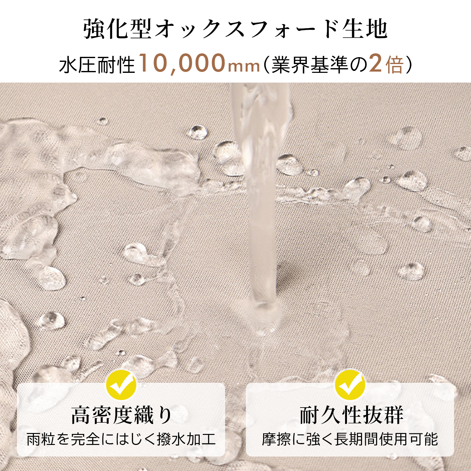 【防水&通気レインコート】このレインコートは防水性と耐摩耗性に優れたナイロンオックスフォード素材を採用し、耐水圧10000mmに耐え、三重防水加工を施されており、雨水が浸透せず、防水性があります。