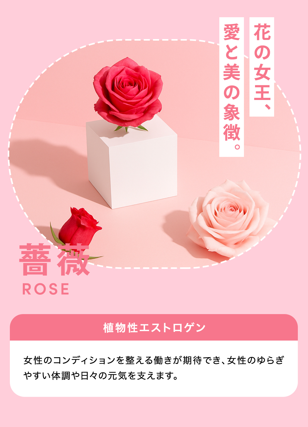 バラは、ザクロの約8倍ものエストロゲンを含有しており、