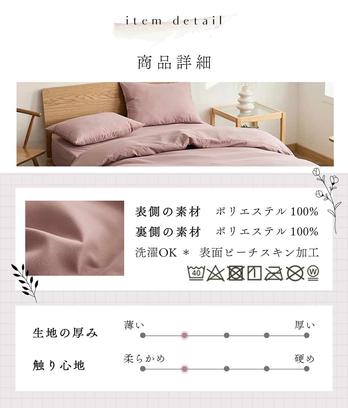 カラー:ホワイト、グレー、 ピンク、 ベージュ、ダークグレー