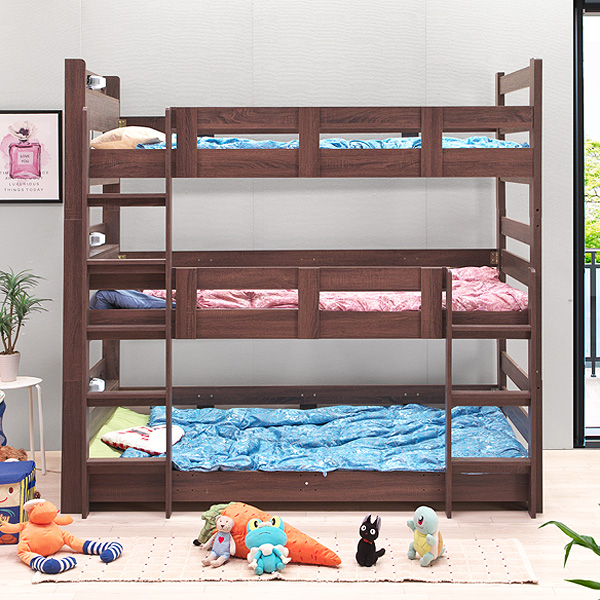 | ■サイズ: 外寸 幅102.5cm 長さ209cm 高さ200cm 内寸 幅98cm 長さ196cm 詳細 下段サイドフレーム下高さ5cm ・中段・下段上部空間高さ66cm ■カラー: ホワイトナチュラル、ウォールナット ■材質: 本 体 MDFシート貼り、メラミン合板 すのこ床板 LVLハードウッドスノコ ■特徴: 当店オリジナル宮付き3段ベッド 耐震連結金具付き、3段それぞれに2口コンセントとLED照明付 宮棚付き・耐震強化仕様 |