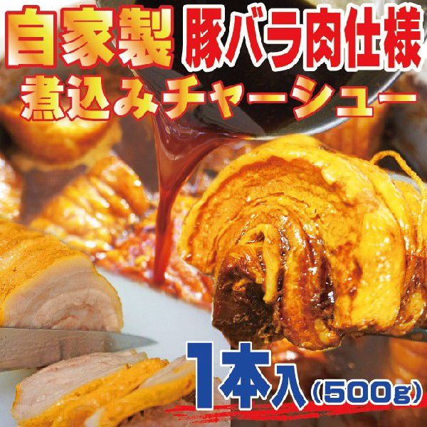 お試し用 とろとろ旨いバラチャーシュー自家製煮込チャーシュー秘伝の醤油ダレで煮込みました 1本入(500g)たれ付 ラーメン焼豚角煮チャーハン