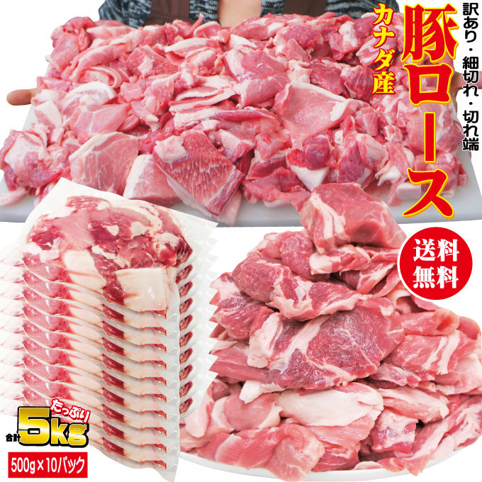 訳あり送料無料 カナダ産豚ロース細切れ・切れ端500gX10袋 冷凍を選んだ場合完全凍結してない場合あります 2セット以上購入でおまけ