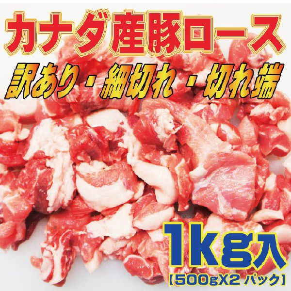 カナダ産豚ロース細切れ・切れ端・訳あり500gX2袋入 半冷凍・完全冷凍を選んだ場合完全に凍結していない場合があります