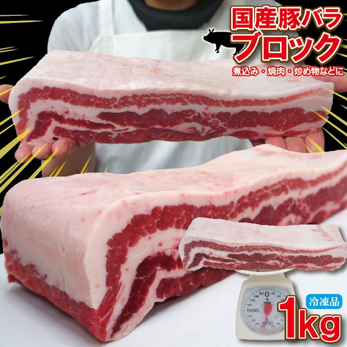 国産 豚バラ肉 ブロック冷凍 1kg ばら チャーシュー用 角煮 業務用