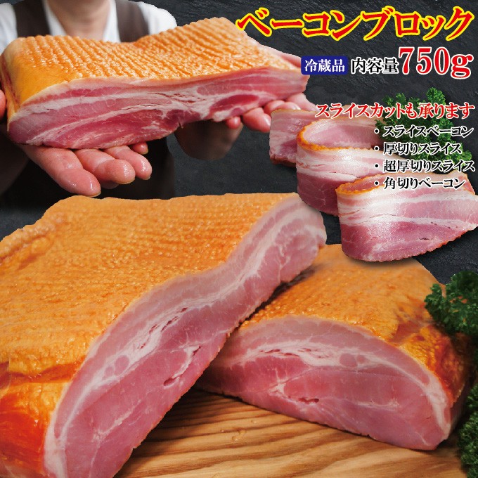 ベーコンブロック750g冷蔵品 選べるカット4種類 スライス加工料金別途発生 ハム スモーク 厚切り スライス バラ