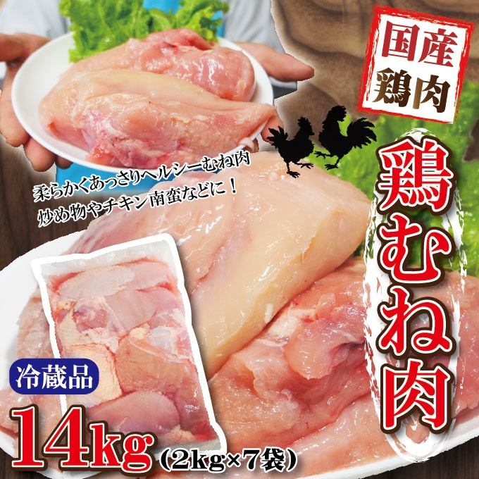 国産鶏むね肉2Kg入x7PKをお安く提供いたします。