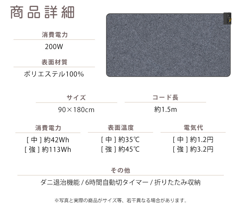 切り忘れタイマー付き(6時間)、ダニ退治機能付き