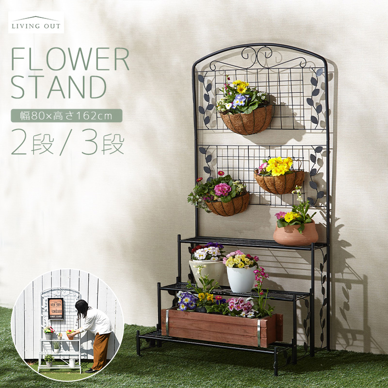 フラワースタンド アイアン 2段 3段 大型 フェンス ラティス アイアン ガーデニング ハンキング フラワーラック 花壇 花台 ベランダ 庭 室内 屋外 玄関
