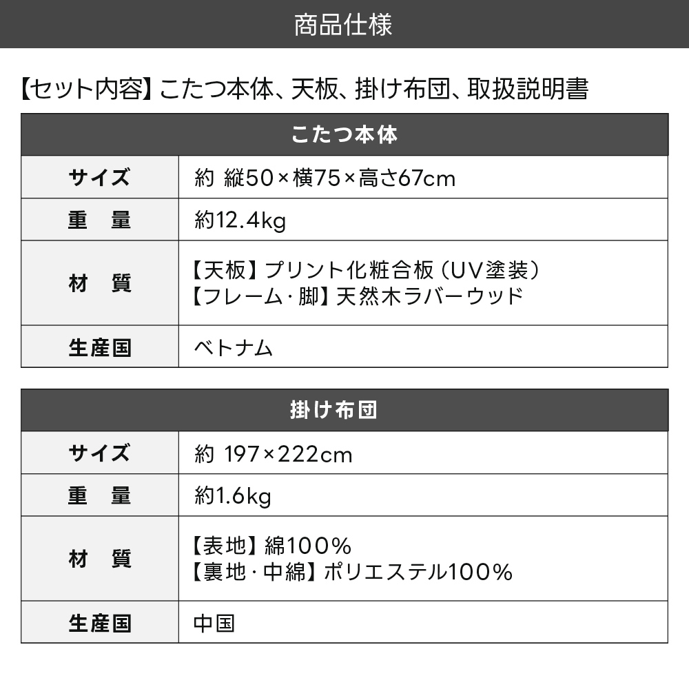 こたつ 1人用 75×50cm 掛布団付き 2点セット 在宅勤務 長方形 おしゃれ パーソナル暖房 メトロヒーター パソコンデスク デスクこたつ テレワーク ハイ