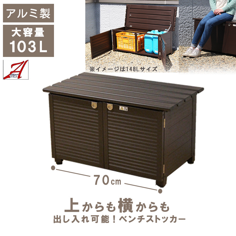 屋外収納 ベンチストッカー 103L アルミ 雨ざらし おしゃれ 幅83cm 物置 頑丈 灯油タンク アウトドア 農作業用品収納 アルミ縁台 APET