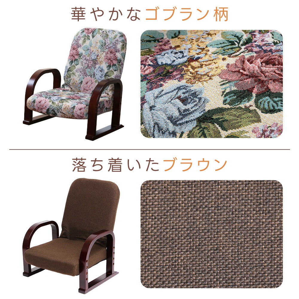 【検索ワード】座敷椅子 座敷チェア 立ち上がり補助 プレゼント ゴブラン ブラウン 花柄 おしゃれ お母さん お父さん 母 父 おばあちゃん おじいちゃん 祖母 祖父 立ち座りしやすい 組立簡単 洋間 和座敷 畳 椅子 頑丈 丈夫 2023新生活家具 楽々座椅子
