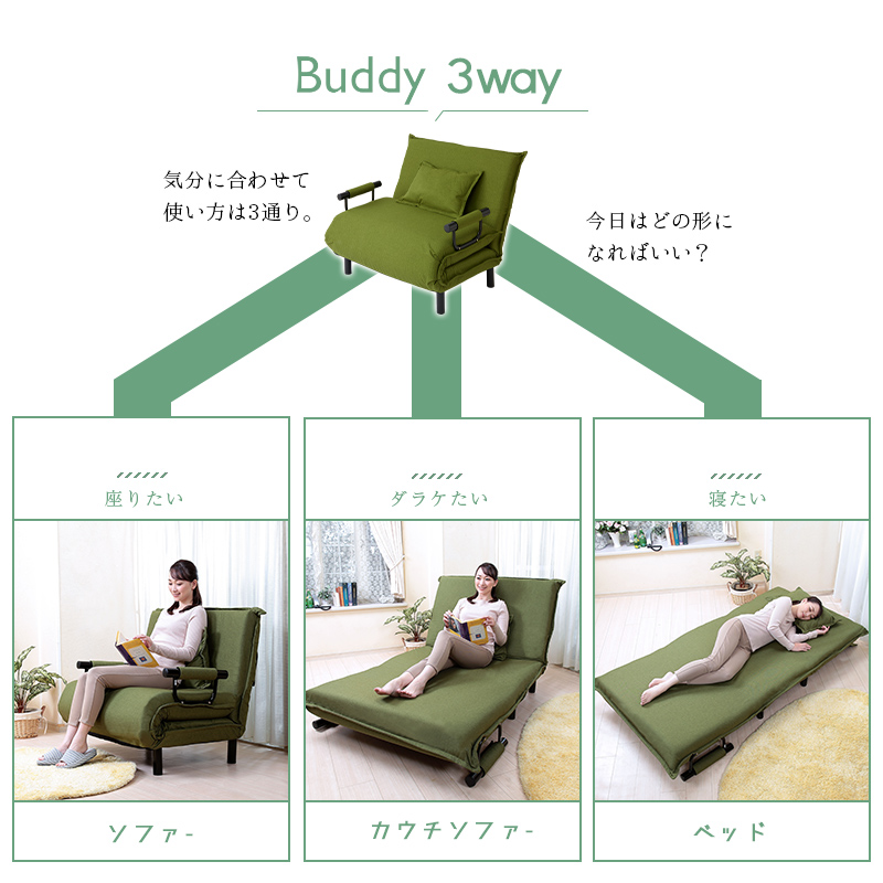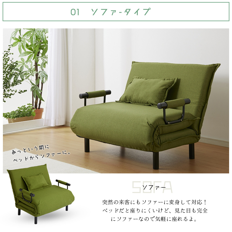 北欧風のコンパクトな可愛いソファベッド。ソファ・カウチ・ベッドと気分に合わせて3通りの使い方ができます!