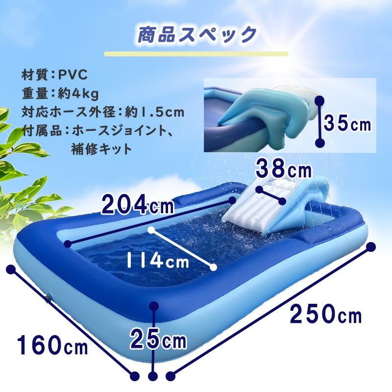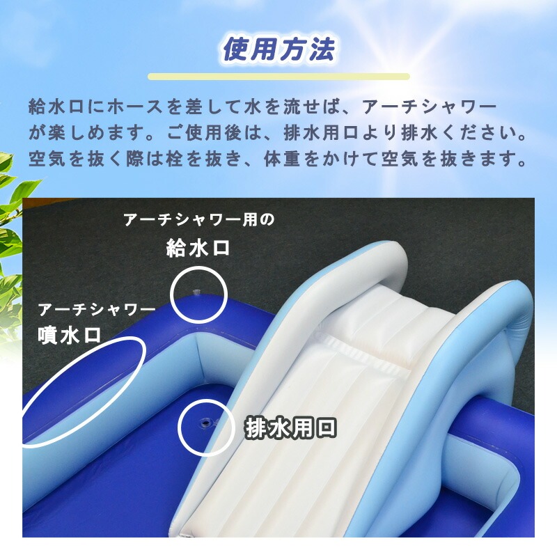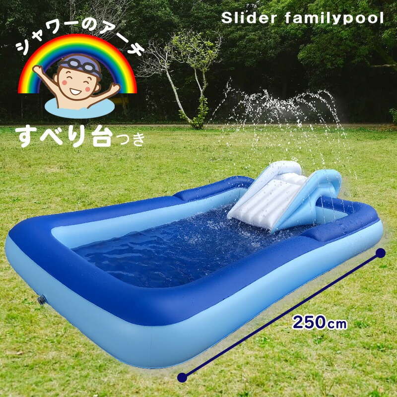 プール 家庭用 大型 250cm×160cm スライダー付き 滑り台付き アーチシャワー付き 外遊び 滑り台 噴水 ビニールプール 水遊び 夏 暑さ対策