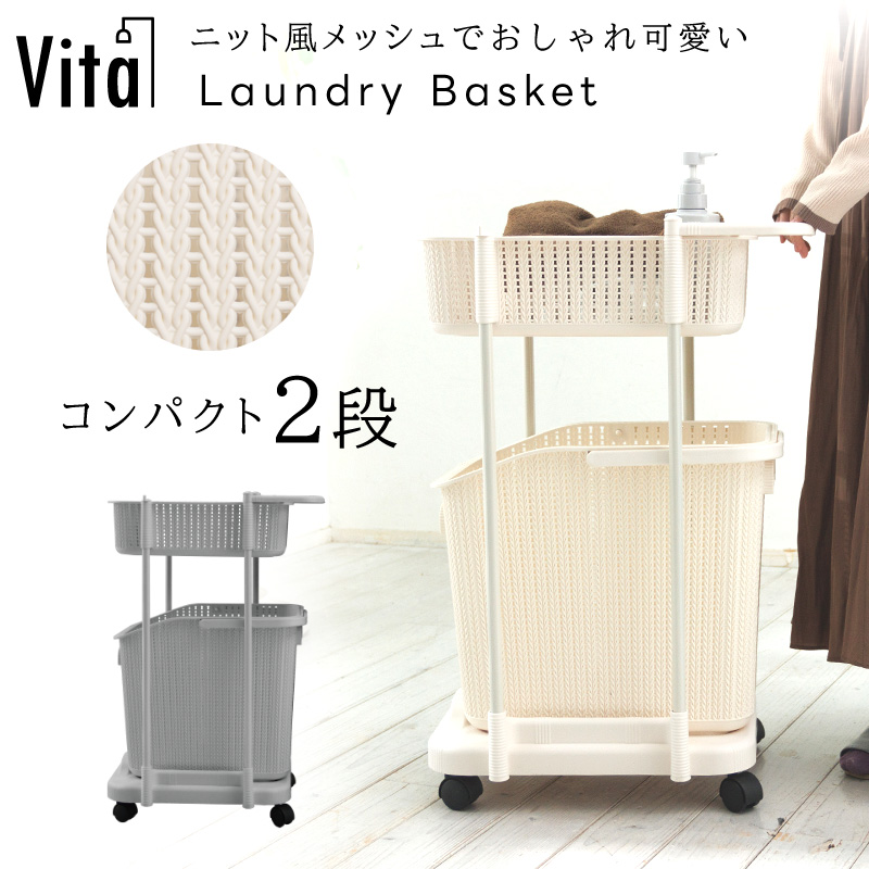 ランドリーバスケット ラック 2段 収納 洗濯かご キャスターつき 隙間収納 コンパクト メッシュ 通気性 清潔 風呂 シンプル おしゃれ 洗濯物入れ Vita
