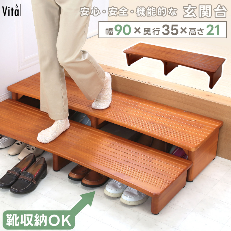 玄関台 90×21 天然木製 踏み台 ステップ 靴収納 玄関収納 滑り止め付 低め 段差 補助 介護 高級感 玄関ステップ 下駄箱 シューズラック 靴箱 木目模様