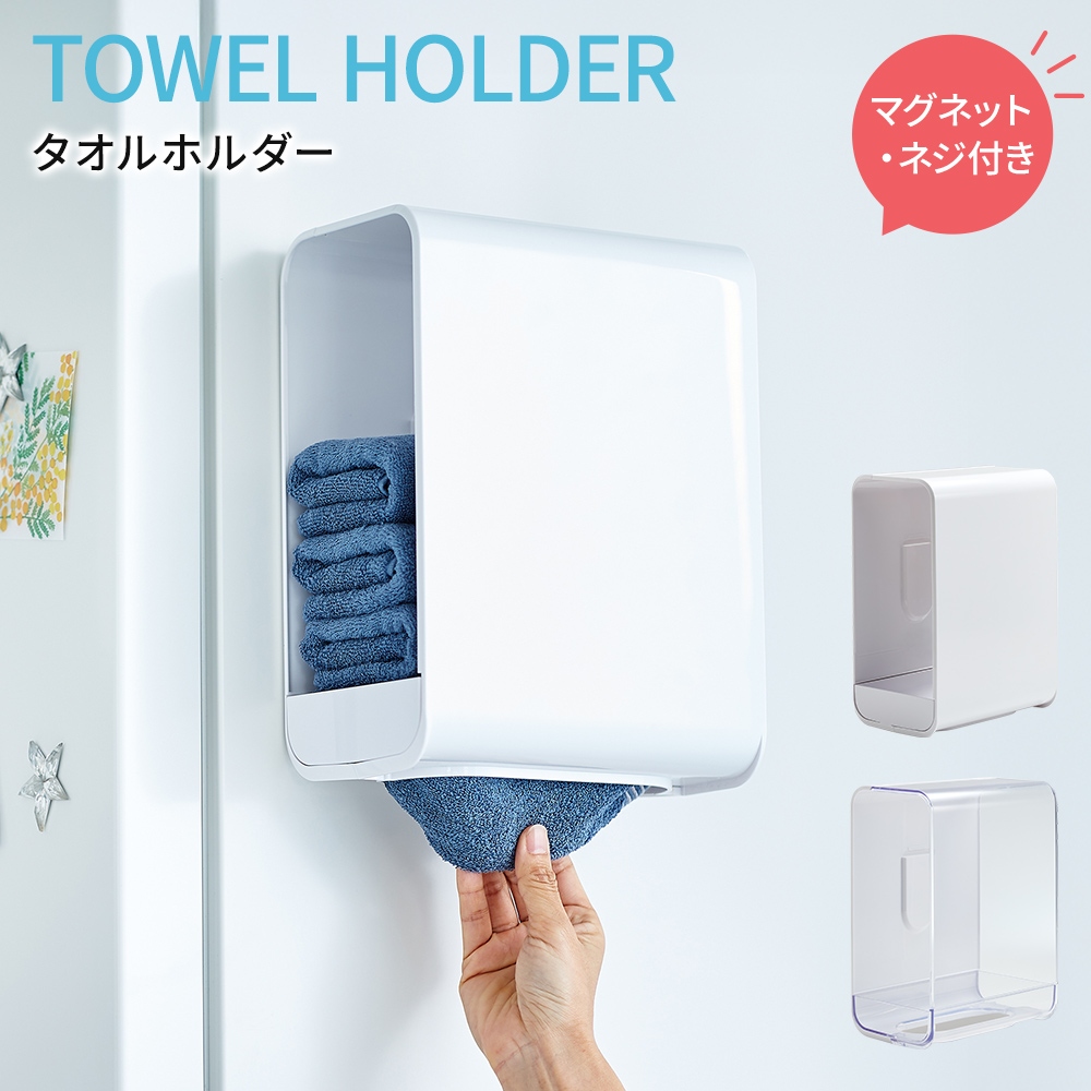 伊勢藤 I-586 タオルホルダー ホワイト クリア マグネット付き フック付き タオルストッカー タオル ペーパーホルダー 収納ケース ISETO