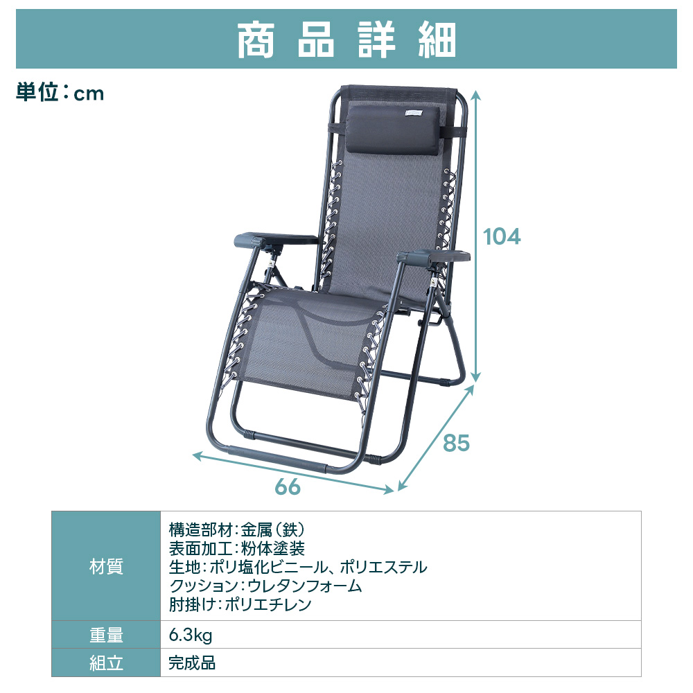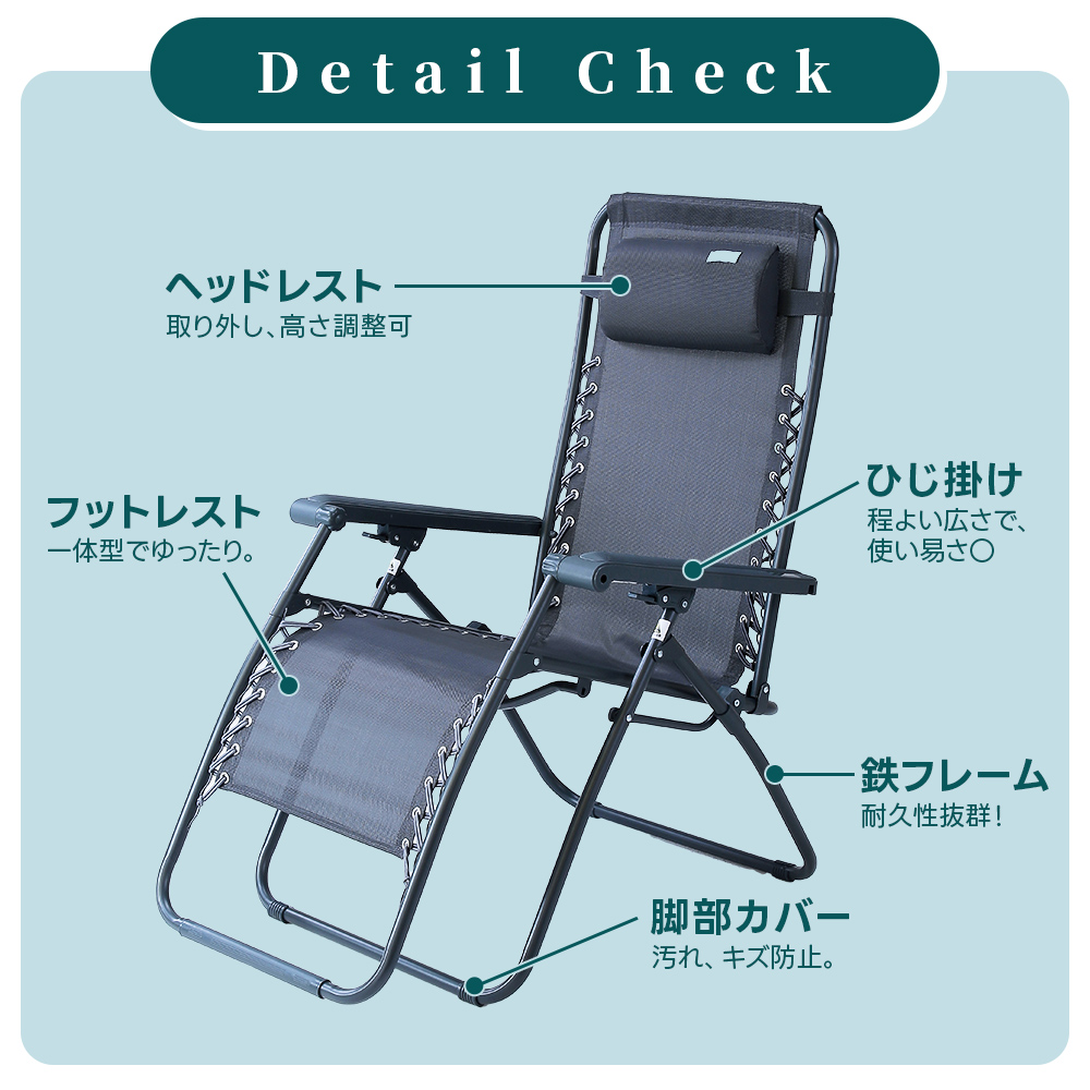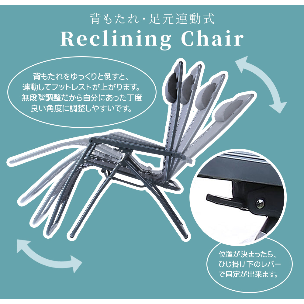 灰色 アウトドア リクライニング リラックスチェア 椅子 座椅子 パイプ椅子 コンパクト 一人用チェア 一人暮らし ガーデンチェア エクステリア 角度調整 一体型オットマン 脚置き ハイバック 持ち運び アームチェア