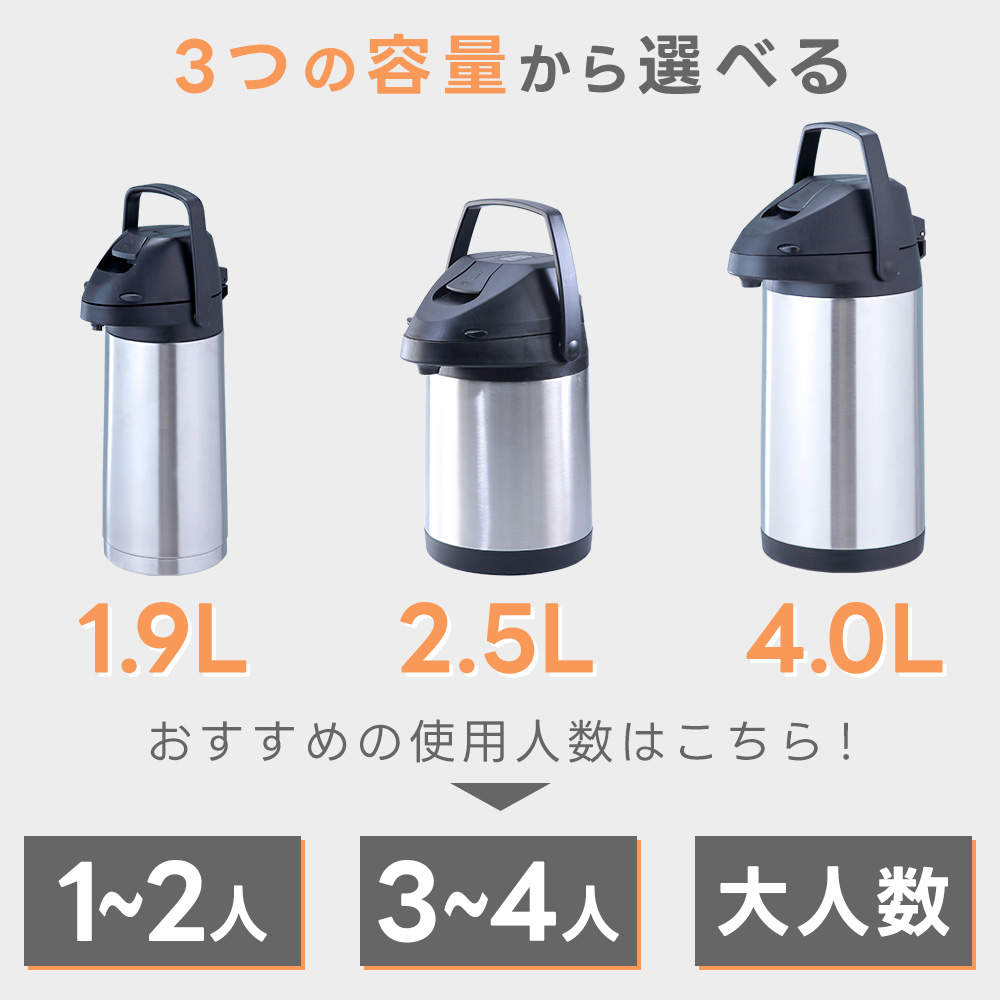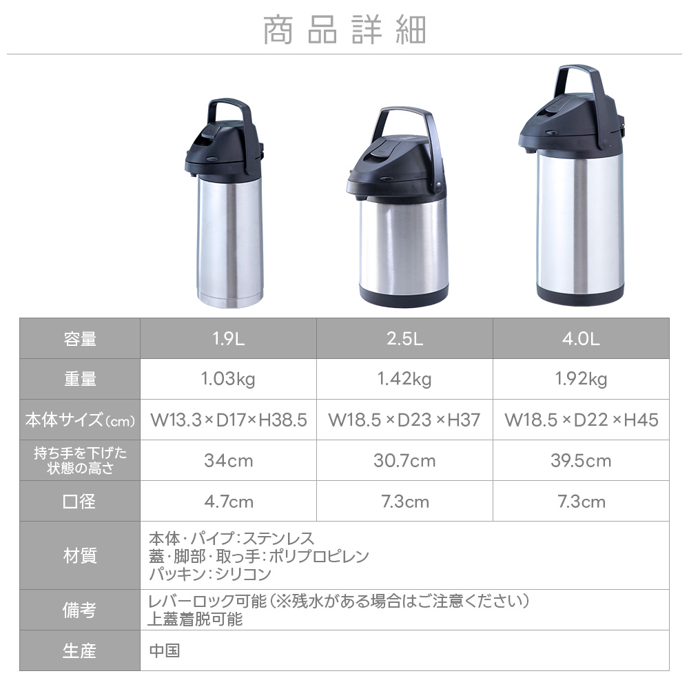 レバー式ステンエアーポット 2.5リットル まほうびん ステンレス 給湯 丈夫 省エネ 広口 コンパクト エコ 節電 便利 保存容器 cp-915 敬老の日