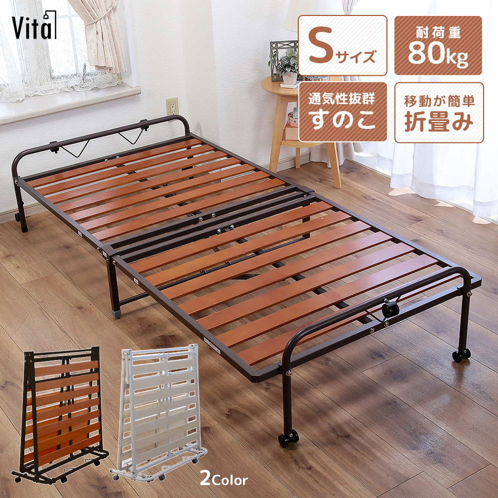 すのこ スノコ シングルベッド 春夏ベッド 通気性 折畳み ミニマリスト コンパクト シングル 安い 一人暮らし 新生活 引越し 転勤 家具 収納 たためる キャスター付き 涼しい 布団 マットレス対応 Vita