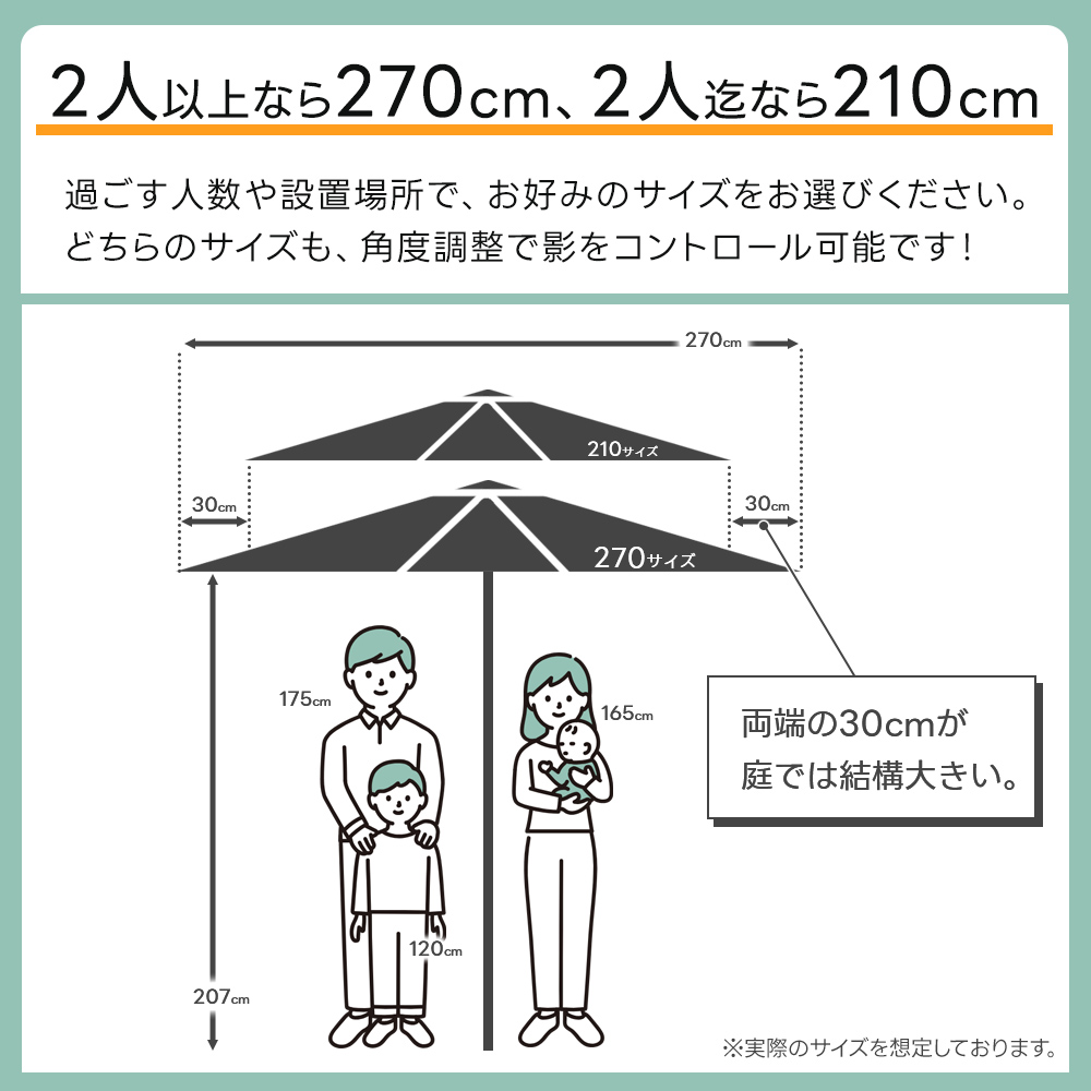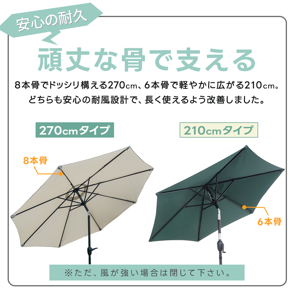 角度が変えられるパラソル 210cm