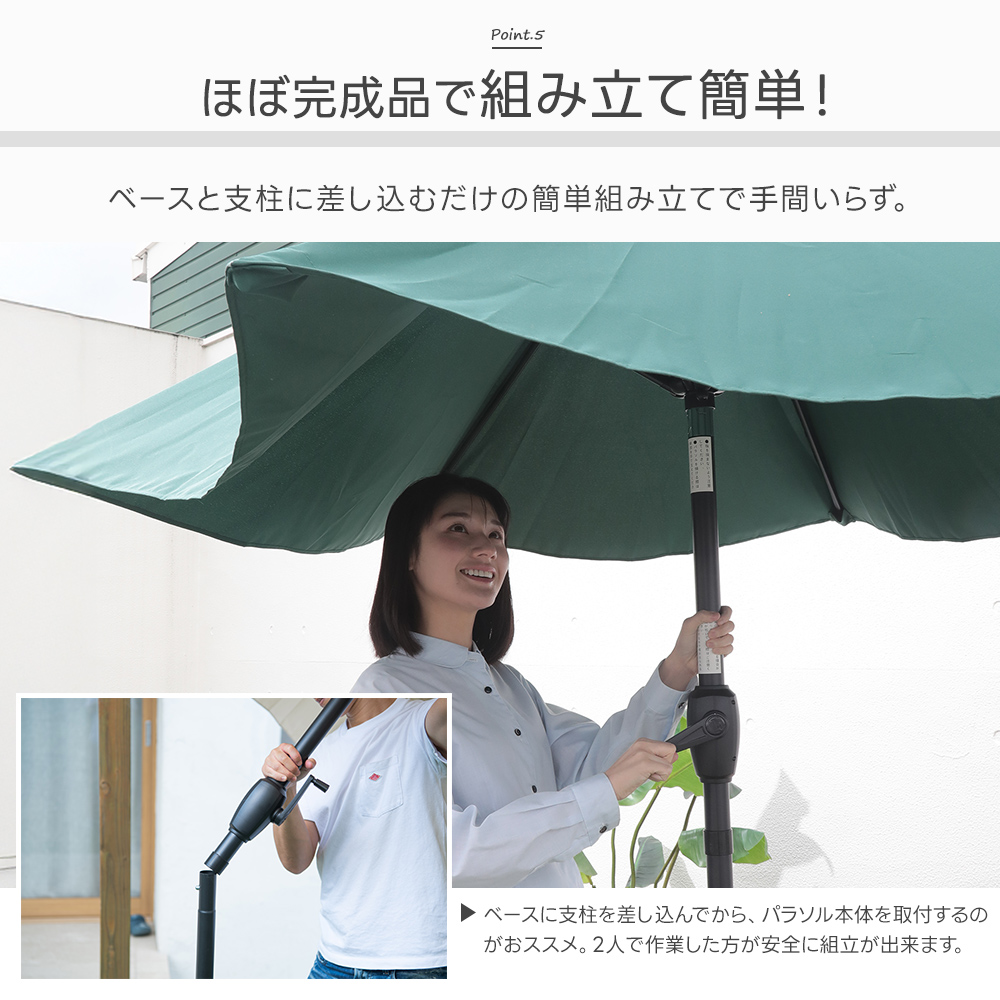 軽い力でパラソルの開け閉めが出来るので、女性でも楽々。