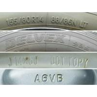 [管理番号] TW1498 ◎タイヤ [メーカー] トーヨータイヤ(TOYO TIRE) [品名] DELVEX M935 [サイズ] 155/80R14 88/86N [製造年] 2021年製 [残溝] スリップサイン付近:約8.3-8.6mm ※上記はあくまで参考程度です。残溝は画像にてご判断ください。 [本数] 4本 まだまだ溝あります。