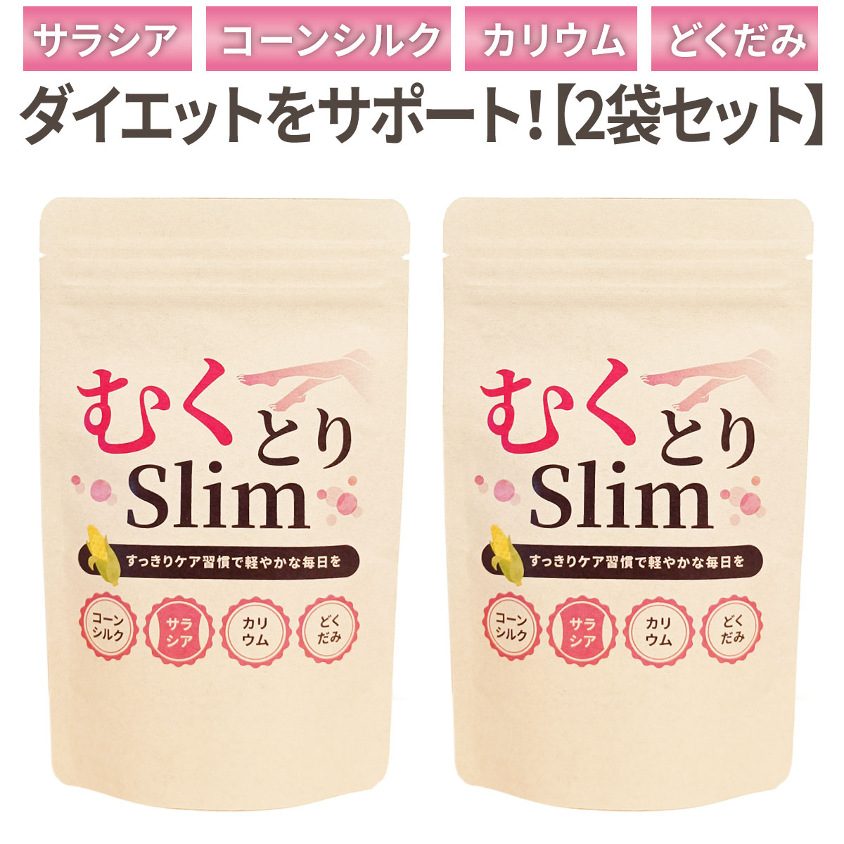 【2個セット割】【ダイエットサプリ】むくとりslim180粒×2袋 サプリメント サラシア・コーンシルク・カリウム・どくだみ ダイエットをサポート!