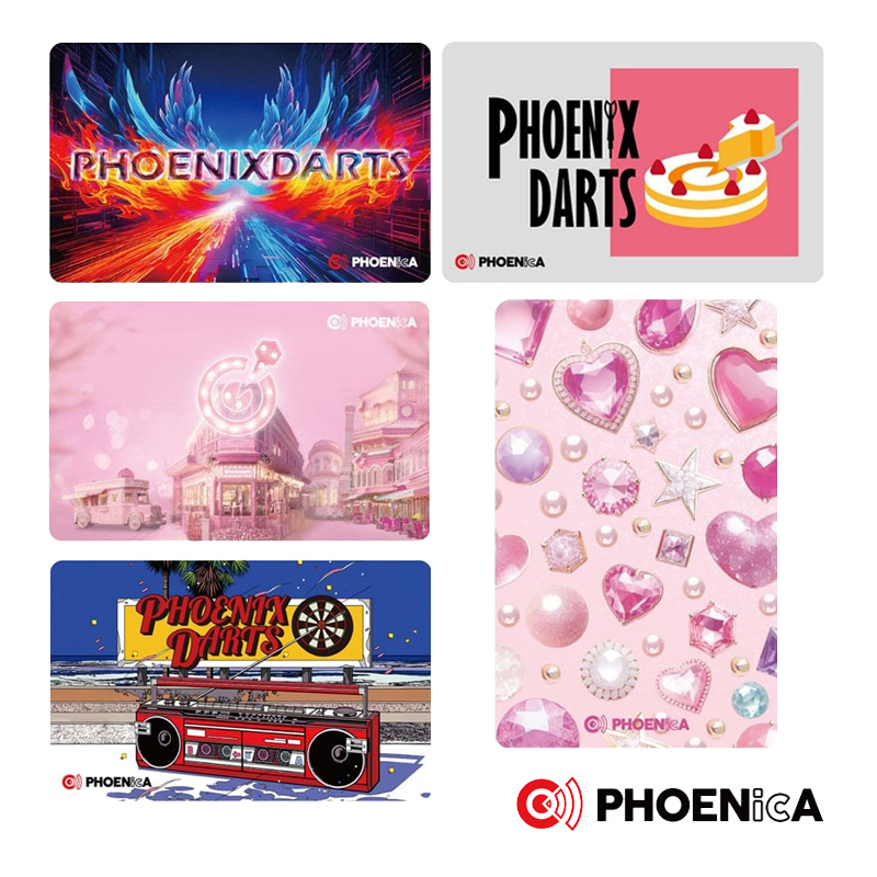PHOENIX CARD(フェニックスカード)とはPHOENicAのひとつであり、オンラインダーツマシンで使える、ダーツのプレイデータを記録する「IDカード」です。