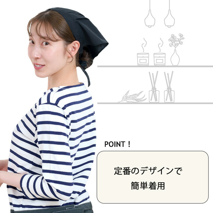 | 説明 特徴 | 飲食サービスには欠かせない、定番の三角巾。 タック入りで美しいシルエットが保てます。デパ地下やスーパーのデリコーナーだけでなく お土産や和菓子洋菓子などの販売スタッフのユニフォームにもおすすめ。 |