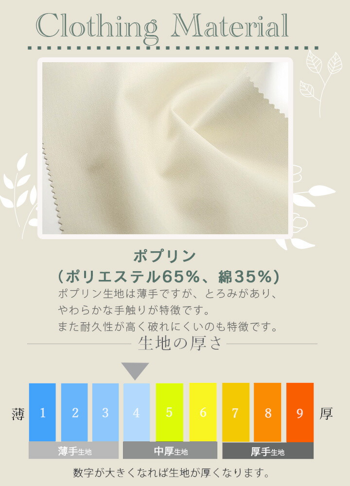 ■素材:ポプリン(ポリエステル65%、綿35%)