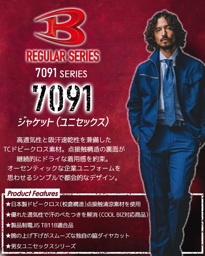 【バートル BURLTE 作業服 バートル 7091】■高品質な日本製ドビークロス点接触清涼素材を使用■優れた通気性と汗のべたつき解消など夏の暑さに対応■製品制電JIS T8118適合品