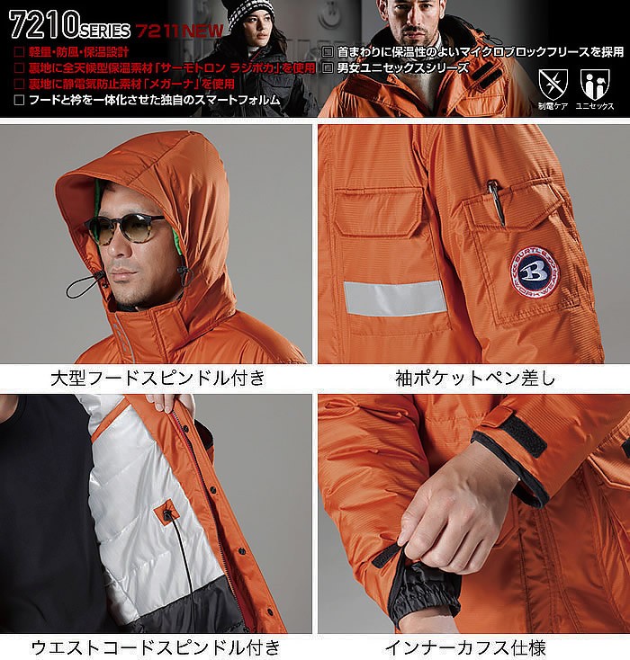 バートル 防寒着 大型フード付き 防寒コート 7211 防風 軽量 男女兼用 作業服 防寒服 作業着 7210シリーズ
