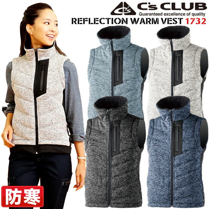 防寒ベスト 防寒着 リフレクションウォームベスト 1732 ニット素材 反射 男女兼用 帯電防止 防寒服 防寒着 作業服 中国産業 1738シリーズ 即日発送