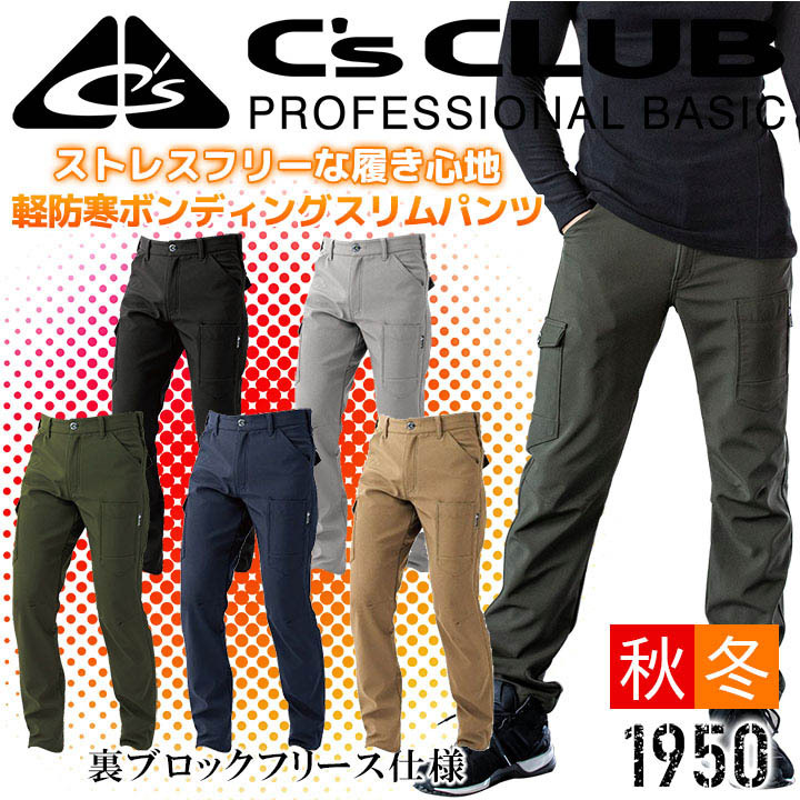 防寒ズボン 防風 中国産業 1950 防寒パンツ ボンディングスリムパンツ 防寒服 防寒着 保温 撥水 起毛 メンズ Cs CLUB 作業服 4L-6L