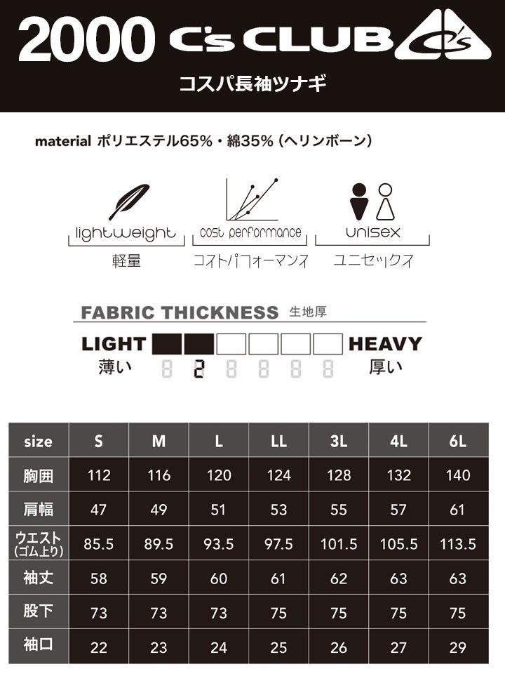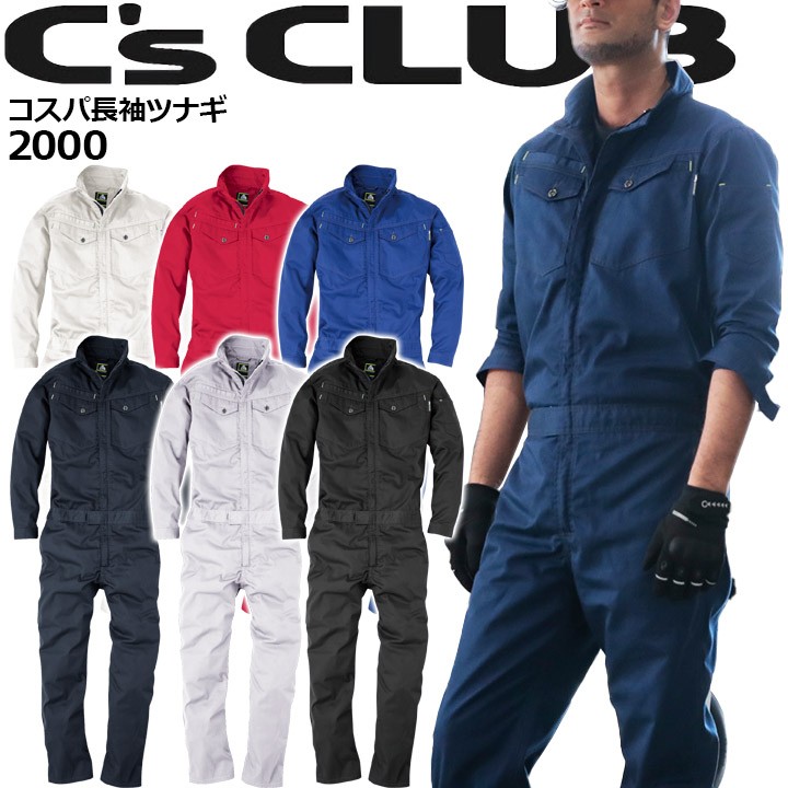 ツナギ 2000 シーズクラブ コスパ長袖つなぎ 軽量 ユニセックス ヘリンボーン Cs CLUB 作業着 作業服 中国産業 即日発送