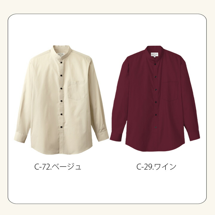 シャツ 長袖 スタンドカラー 立ち襟 男女兼用 ノーアイロン arbe アルベ EP-6839 カフェ 飲食店 サービス業 制服 レストラン ユニフォーム