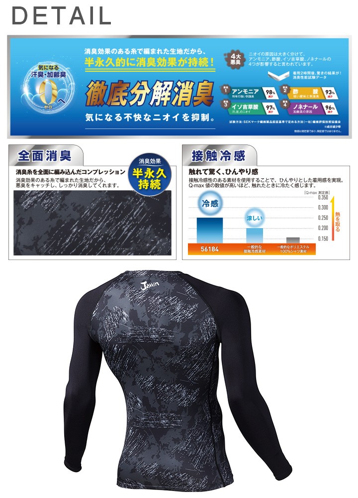 ジャウィン 長袖インナーウェア 56184 夏用 ロングスリーブ コンプレッション 消臭 接触冷感 ストレッチ 吸汗速乾