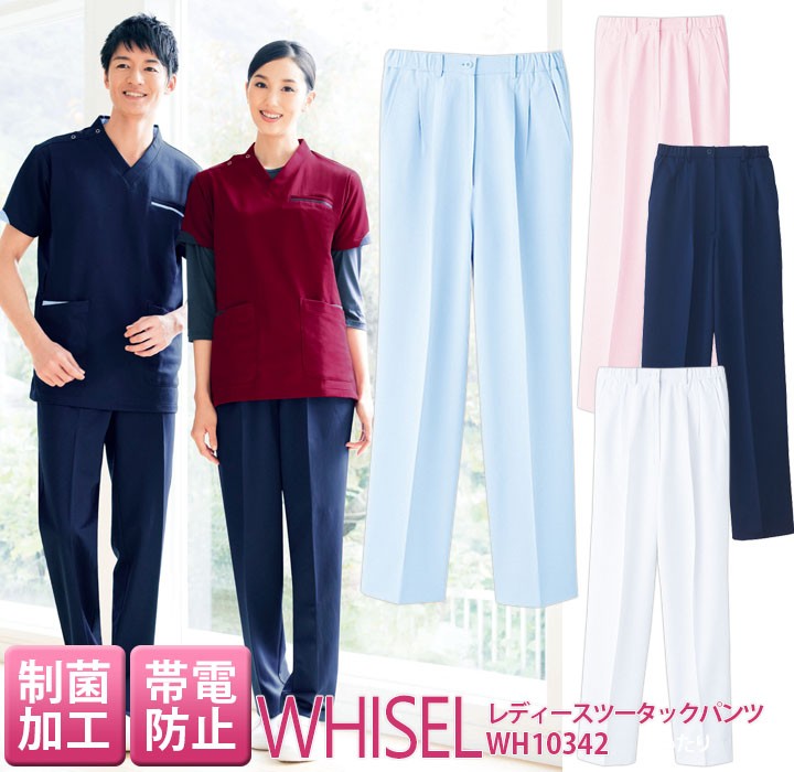 レディースツータックパンツ 白衣 whisel ホワイセル スクラブパンツ wh10342 白衣ズボン 女性用 レディース 自重堂 メディカルウェア 医師 医療用白衣
