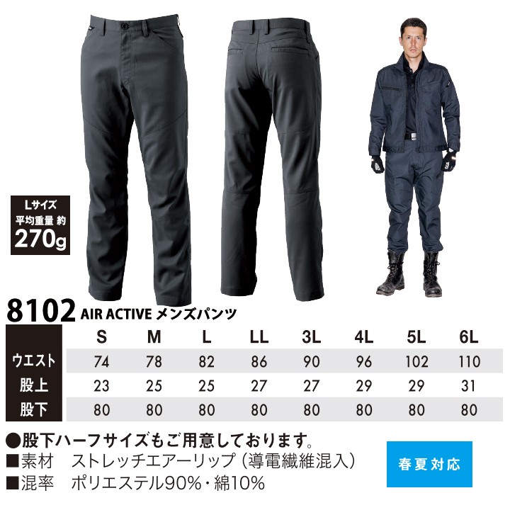 TSデザイン AIR ACTIVE メンズパンツ 8102 藤和 TS-DESIGN スラックス 通気性 ストレッチ 春夏 作業服 作業着 810シリーズ