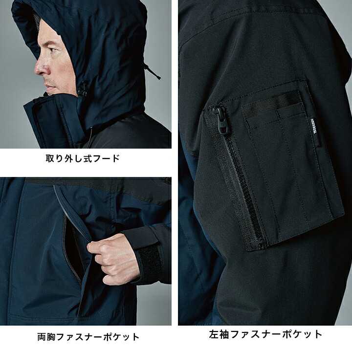 | 説明 特徴 | ・Sorona AURAファイバーダウンを使用 ・フルハーネスや腰道具の着用を想定した設計 ・ロゴ入りドットボタン ・裾リブ仕様で外気の侵入を防ぐ ・防風性を高める前立て仕様 ・両側内ポケット付 ・初期撥水 ・縫製糸による静電気ケア |
