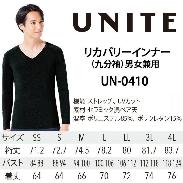 上下セット リカバリー インナーシャツ インナーパンツ リカバリーウェア 九分袖 男女兼用 unite UN-0410 UN-0411 吸汗速乾 オールシーズン ユナイト チトセ