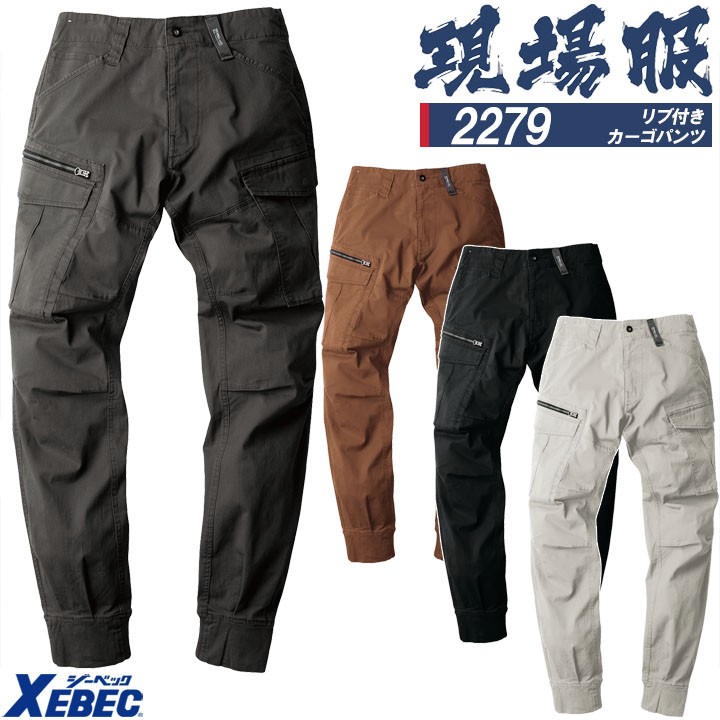 リブ付きカーゴパンツ ジーベック 2279 ストレッチ ズボン カジュアル 作業服 作業着 春夏 XEBEC ユニフォーム 2274シリーズ