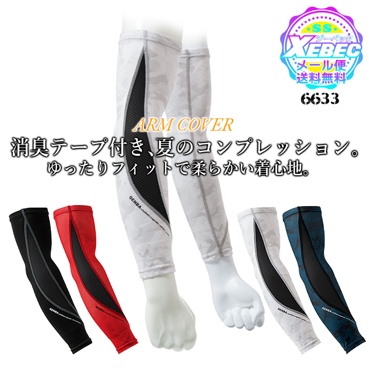アームカバー メンズ 夏用 接触冷感 ジーベック 6633 吸汗速乾 消臭 メッシュ 通気性 ストレッチ アームガード 腕カバー コンプレッション 春夏 作業服 XEBEC