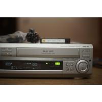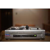 98年製。【付属】本体、リモコン(ハンディカム用、電池入り)、電源ケーブル、動作確認用8mmテープが付属します。リモコンはハンディカム用になりますが、再生・早送り・巻き戻しなどの基本的な操作は可能です(リモコンでのHI8⇔VHS切り替えはできません)。【商品の状態】綺麗にクリーニングしています。本体はフロントパネルに小キズがありますが、比較的きれいな状態です。蛍光表示管は輝度にムラがあり真ん中あたりが少し薄く見えます。VHS側はヘッド清掃、テープセンサーの清掃、ローディングモーターギヤの補修、ロータリースイッチの接点清掃・接点グリス塗布、カセコンギヤの補修、Hi8側はヘッド清掃、ピンチローラー清掃、リール台ギヤを良品に交換、カセコンギヤの補修などのメンテナン