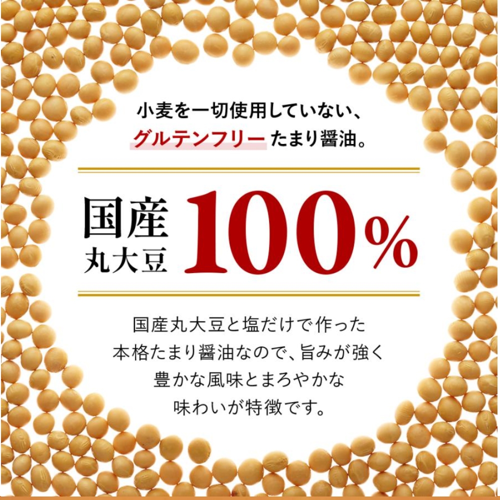 ★グルテンフリー 国産丸大豆たまり醤油【1.8リットル】はこちら>国産丸大豆を100%使用し、小麦を使わずに仕込んだたまり醤油です。