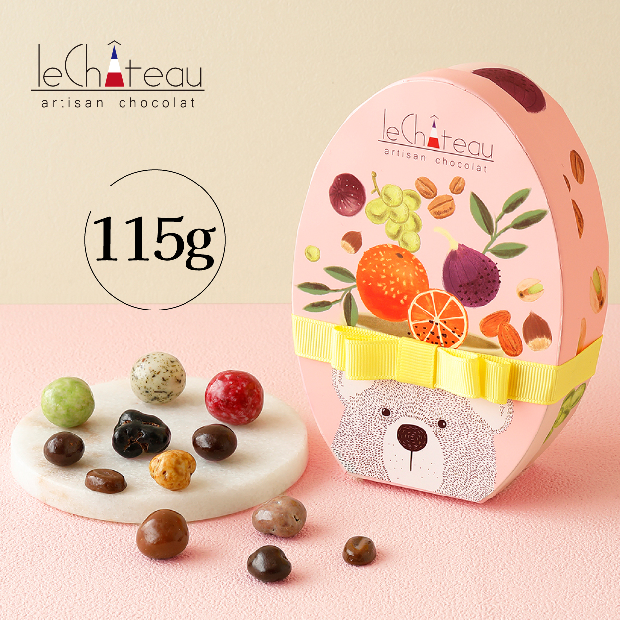 ■原材料:砂糖、カカオマス、ココアバター、全粉乳、ヘーゼルナッツ、イチジク、レーズン、オレンジピール、ぶどう糖、米粉、小麦粉、コーヒー、ワイン(貴腐ワイン)、小麦グルテン、ココアパウダー、ライム果汁、小麦麦芽粉、ジャスミンティー、食塩、コーンスターチ、植物油脂、はちみつ/増粘剤(アラビアガム)、光沢剤、乳化剤、香料、膨脹剤、着色料(スピルリナ青、アントシアニン、カラメル、紅花黄、レモン果汁、植物炭末色素、りんご果汁)、(一部に乳成分・小麦・オレンジ・りんご・大豆を含む)