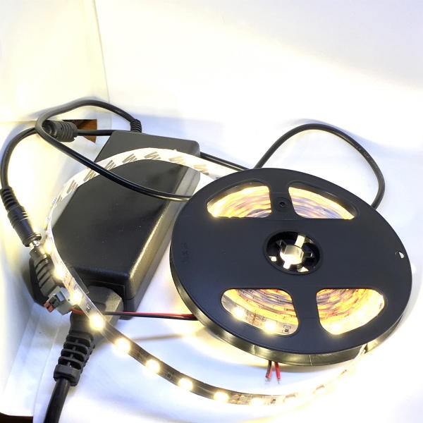 LED テープの裏には粘着テープがついていますので,平らな面にはりつけてご使用ください.電源アダプタをコンセントにさしこんで,おつかいください.