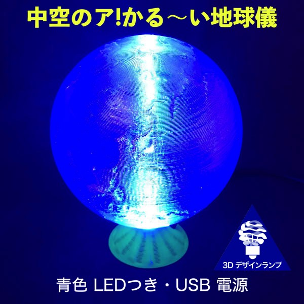 キーワード: FDM,FFF, Illuminated globe, 3D印刷, 3Dプリント, 地球儀, LED照明器具, ライト,ライティング,光,インテリア, 青, 青色